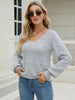 Show off your body with our Arianaknit pom sweater inlight grey that features pom pom details.Be on point with a tea-length knit skirt and a pair of ourdesigner boot.