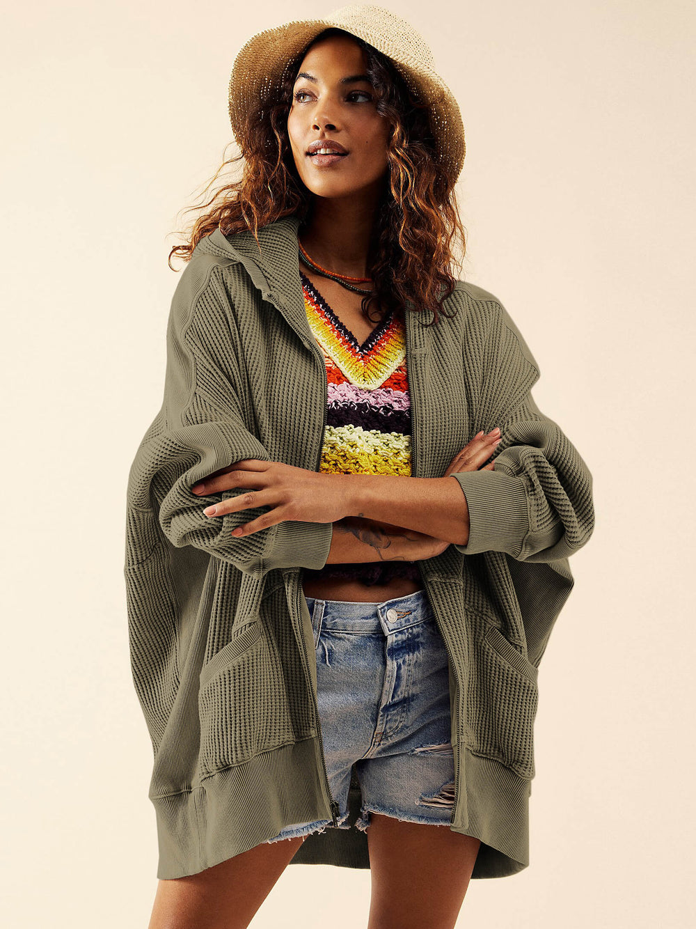 Cozy up with the Campfire Hoodie. Feel the warmth of being around the campfire. without the smoke in your face. Perfect for chilly nights or days spent lounging. this jacket is made for comfort and style. With agreen olive hue. this hoodie is sure to have you livin' life the marshmallow-roastin' way.