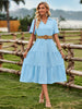 This adorable Celie dress will make you the talk of the town in its playful poplin fabric and unique collared design. With a figure-flattering tie waist and midi length. you'll rock both style and comfort wherever you go.