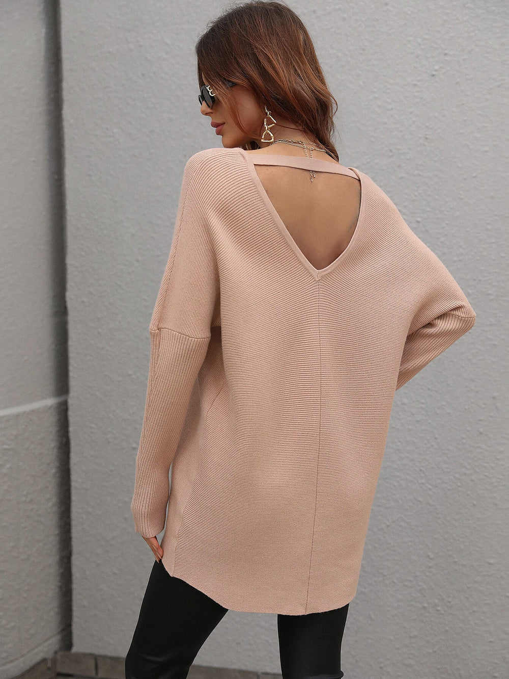 Our Clia Knit comes in aclassic neutral colour in an oversized drape fit. This features aheartneckline and open V back collar. batwing long fitted sleeves. and a roomy fit making this ideal for growing baby bumps. This piece is made from lightweight breathable material which is perfect for a trans-seasonal outfit. Pair withjeans for a lazy day outfit or complete the look with our Jady Rose Heels.