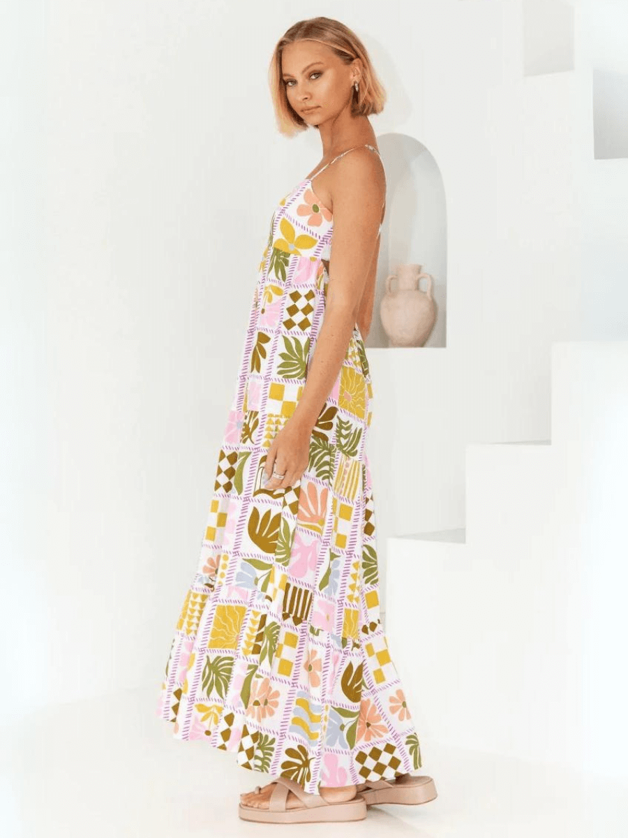 Unleash your daring and adventurous spirit with our Emilie Border Print Maxi Dress. This bold dress features a unique border print that will make you stand out from the crowd. With its maxi length. you'll feel confident and ready to conquer any challenge. Dress it up or down. this dress is perfect for any occasion.