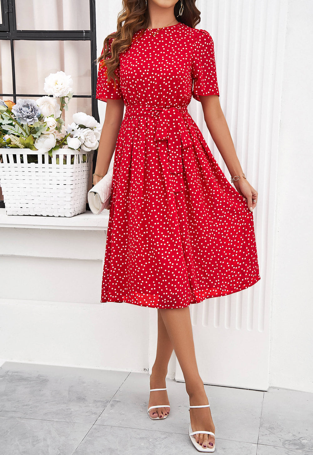Get ready to turn heads in our Margaret Polka Dot Midi Dress. This fun and flirty dress features a playful polka dot pattern and a midi length. making it perfect for any occasion. With its quirky and unique design. you'll be sure to stand out in style. (You'll be the talk of the town. guaranteed.)