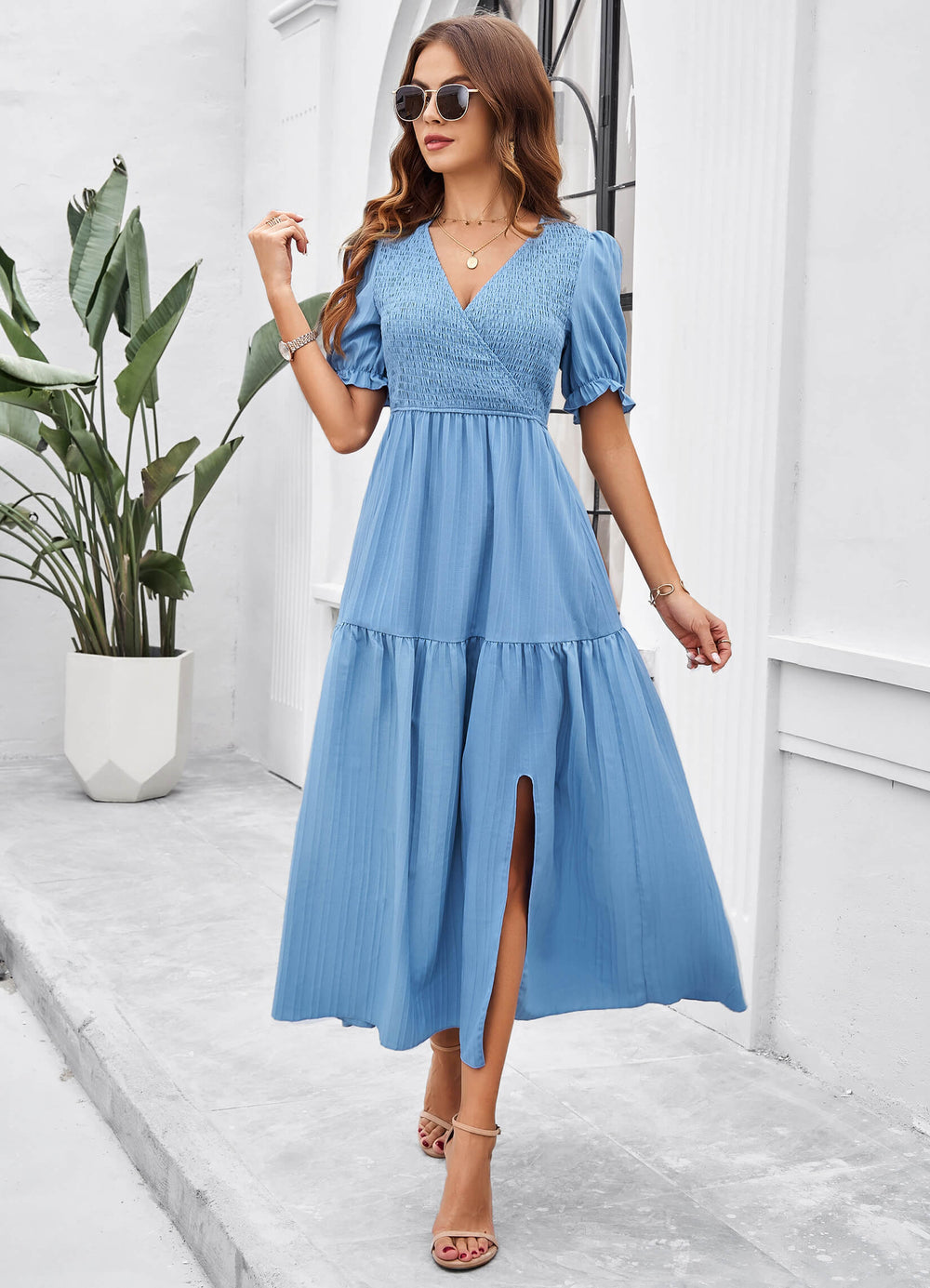 Introducing the Meadow Smock Midi Dress - a playful choice for your summer wardrobe. This blue dress features a smock design. perfect for lazy days or dress-up occasions. Bring a touch of quirkiness to your style with this unique and comfortable piece. (Limited stock. so act fast.)